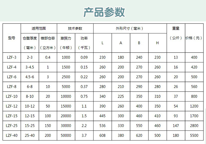 倉壁振打器產(chǎn)品規(guī)格參數(shù)表: